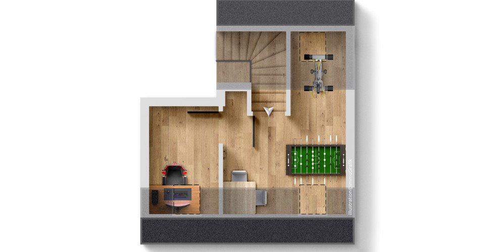 Eine Garage mit elektrischem Torantrieb ist bereits im Kaufpreis enthalten. Besonders praktisch: Sie gelangen von der Garage direkt ins Haus und damit trockenen Fußes in Ihre Wohnung. Vor der Garage steht zusätzlich eine weitere Pkw-Stellfläche zur Verfügung.
